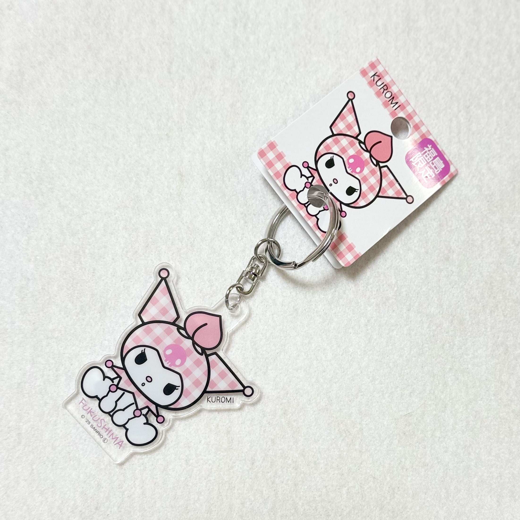福島名物の桃と、ピンクのチェック柄がかわいく組み合わさったご当地キーホルダーが登場!