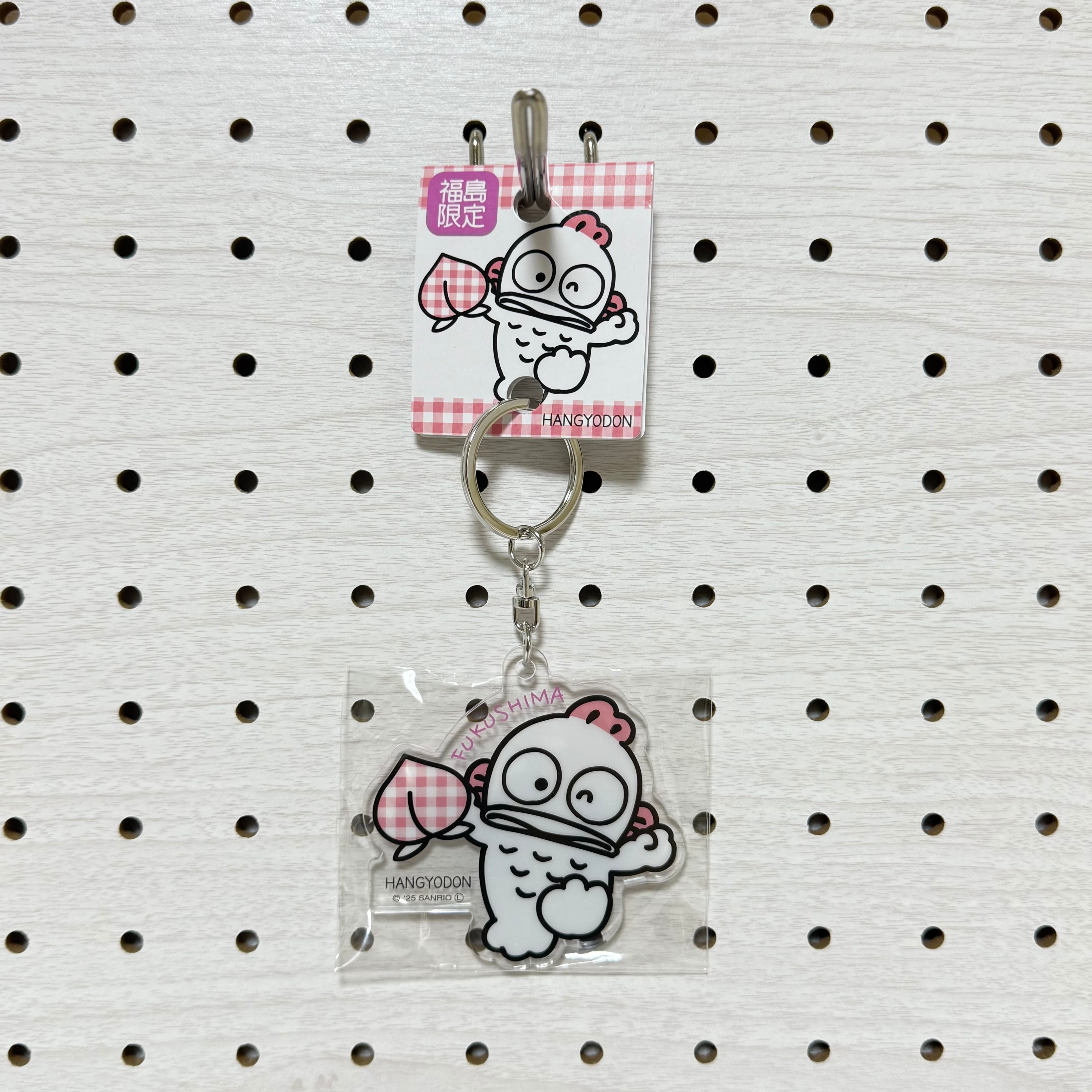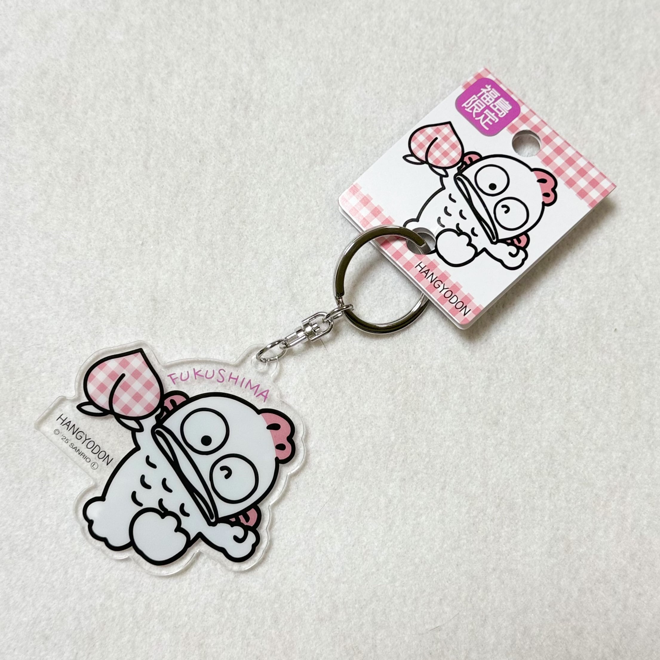 福島名物の桃と、ピンクのチェック柄がかわいく組み合わさったご当地キーホルダーが登場!