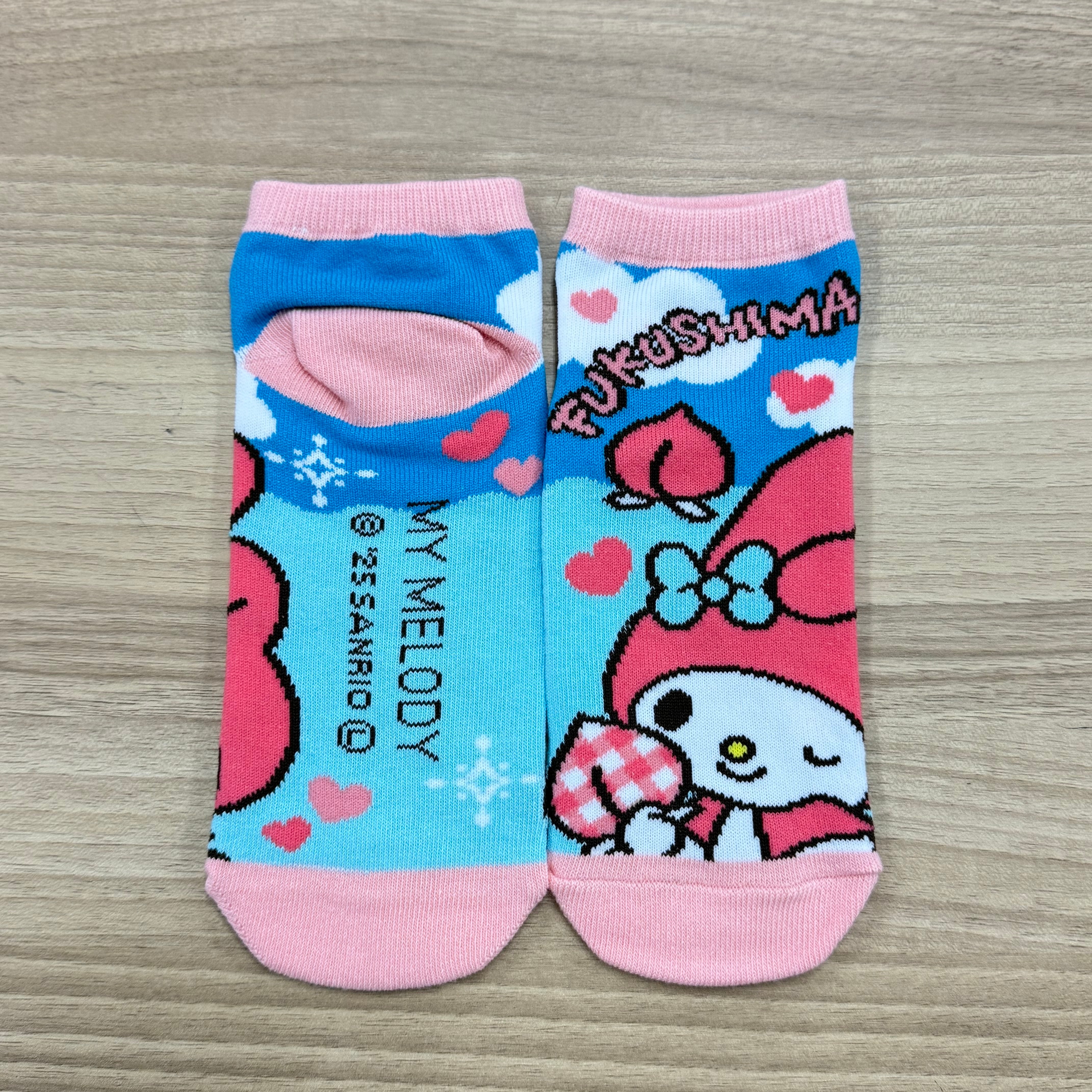 福島の特産品とサンリオキャラクターがコラボしたご当地靴下。
