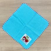 ターコイズブルー色のタオル生地はふわふわで優しい使い心地です。