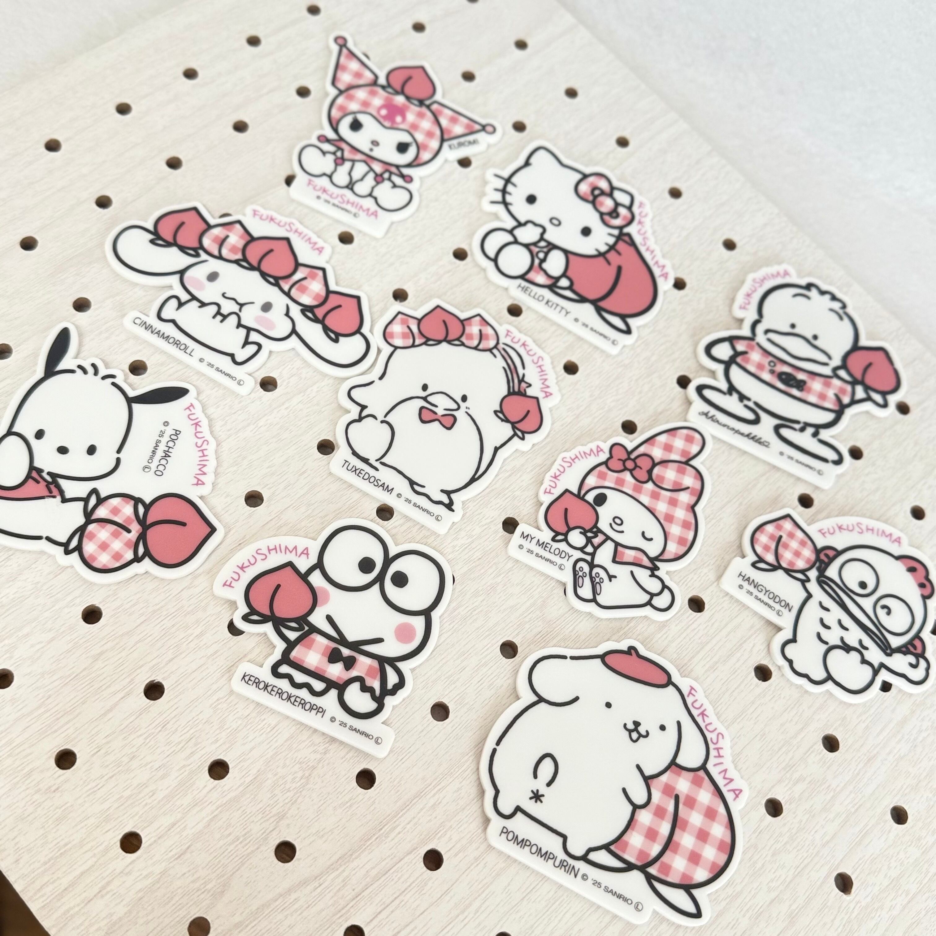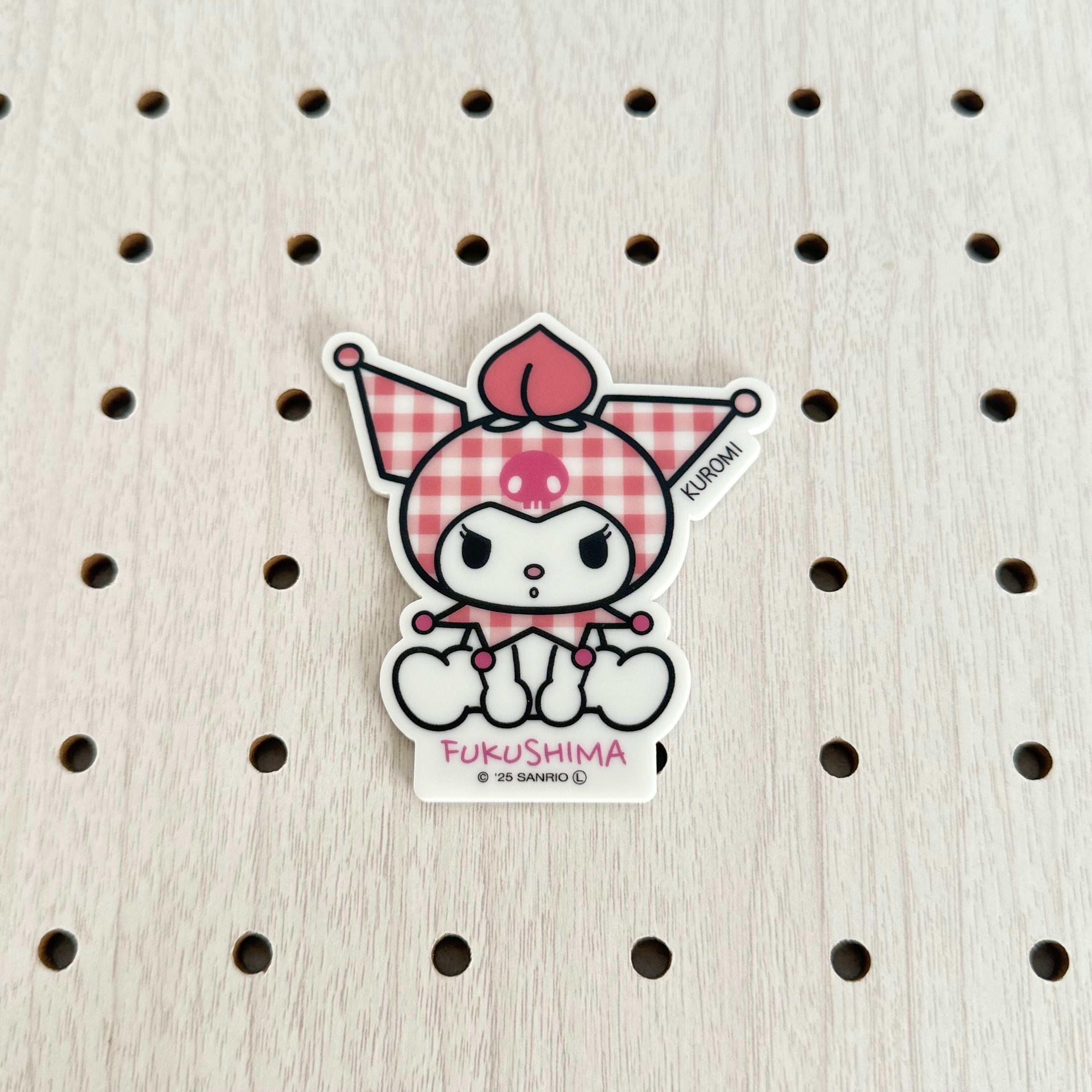 ピンクのチェック柄の頭巾を被ったクロミがとっても可愛いマグネットです。