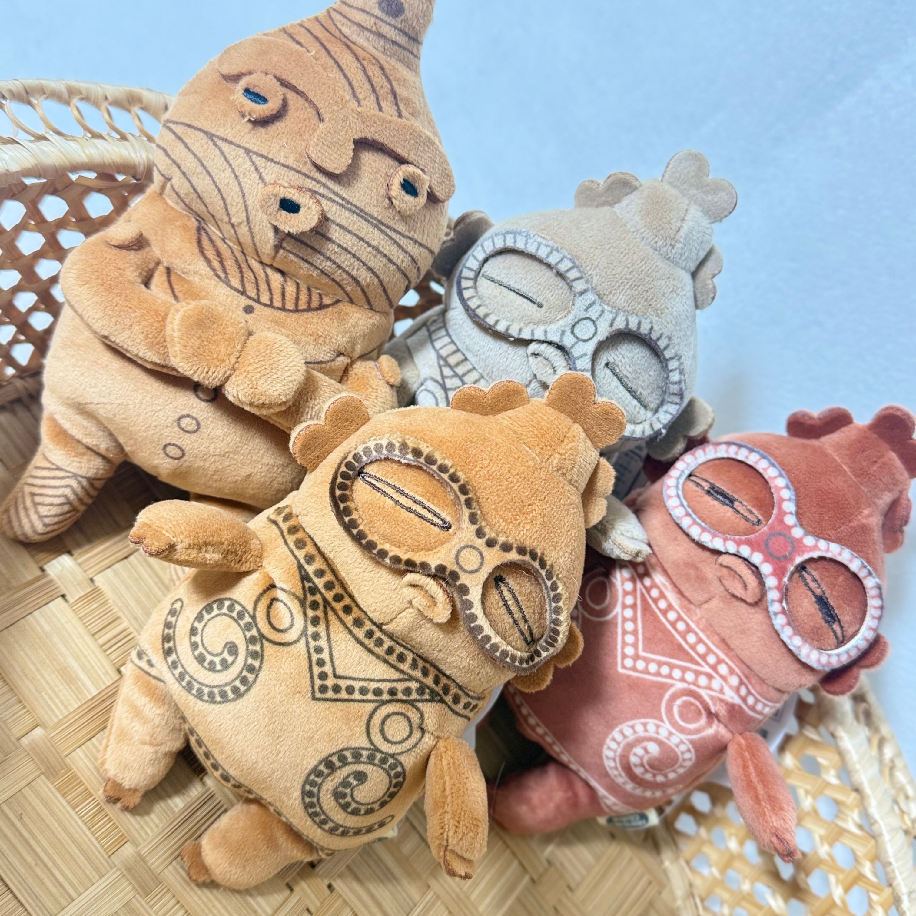 もちシリーズ土偶は、【合掌土偶】【遮光器土偶 鼠色】【遮光器土偶 赤錆色】【遮光器土偶 黄土色】の種類ございます。