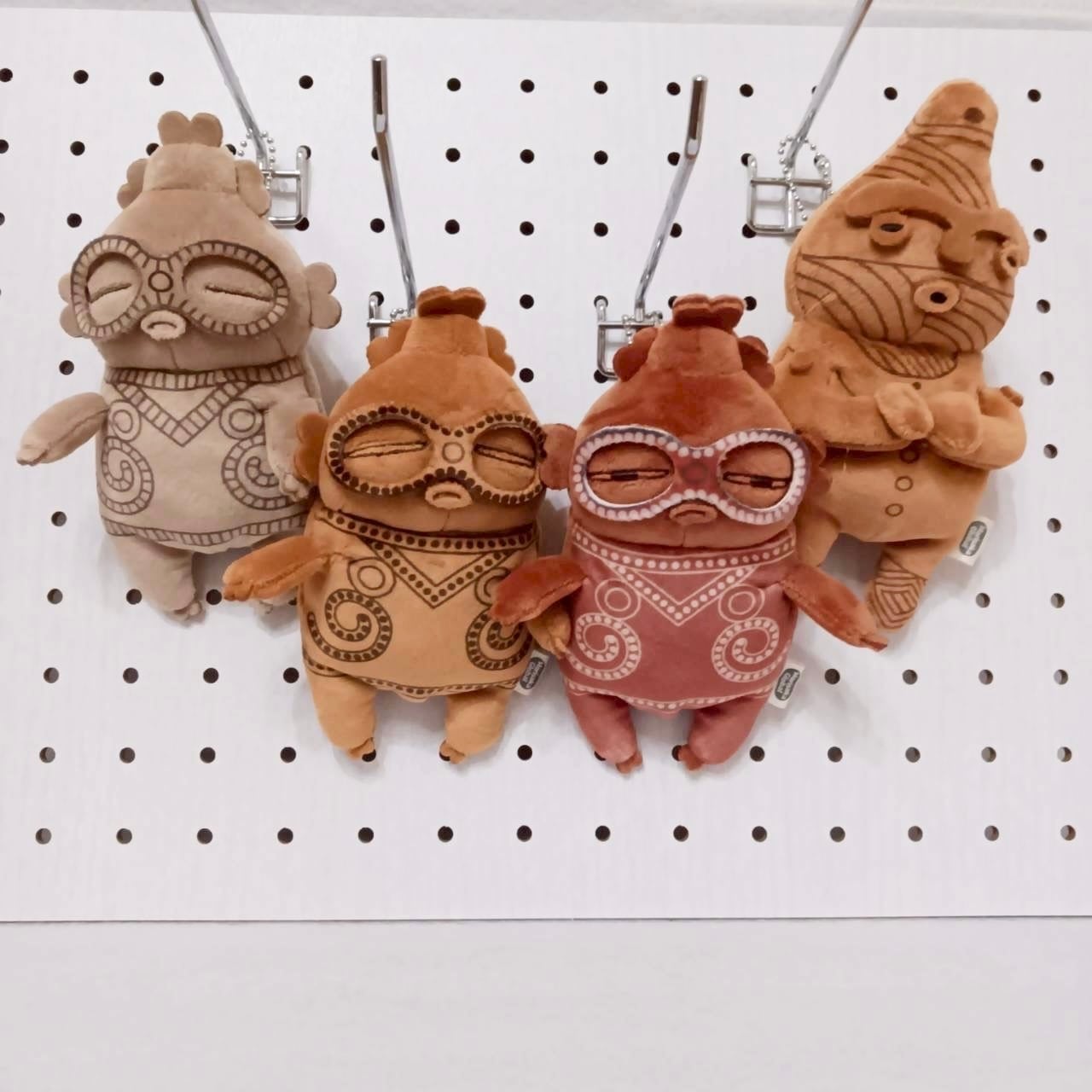 もちシリーズ土偶は、【合掌土偶】【遮光器土偶 鼠色】【遮光器土偶 赤錆色】【遮光器土偶 黄土色】の4種類ございます。