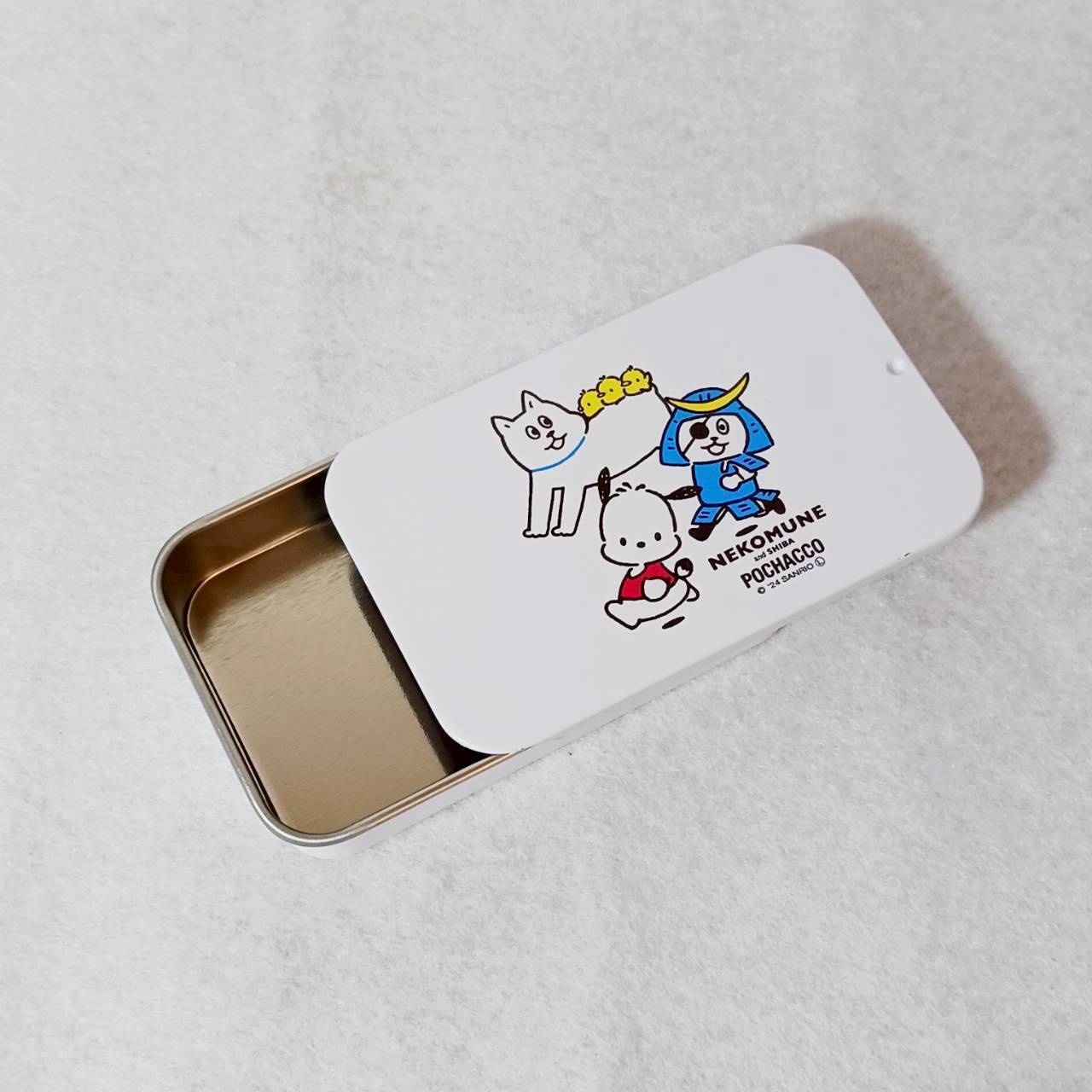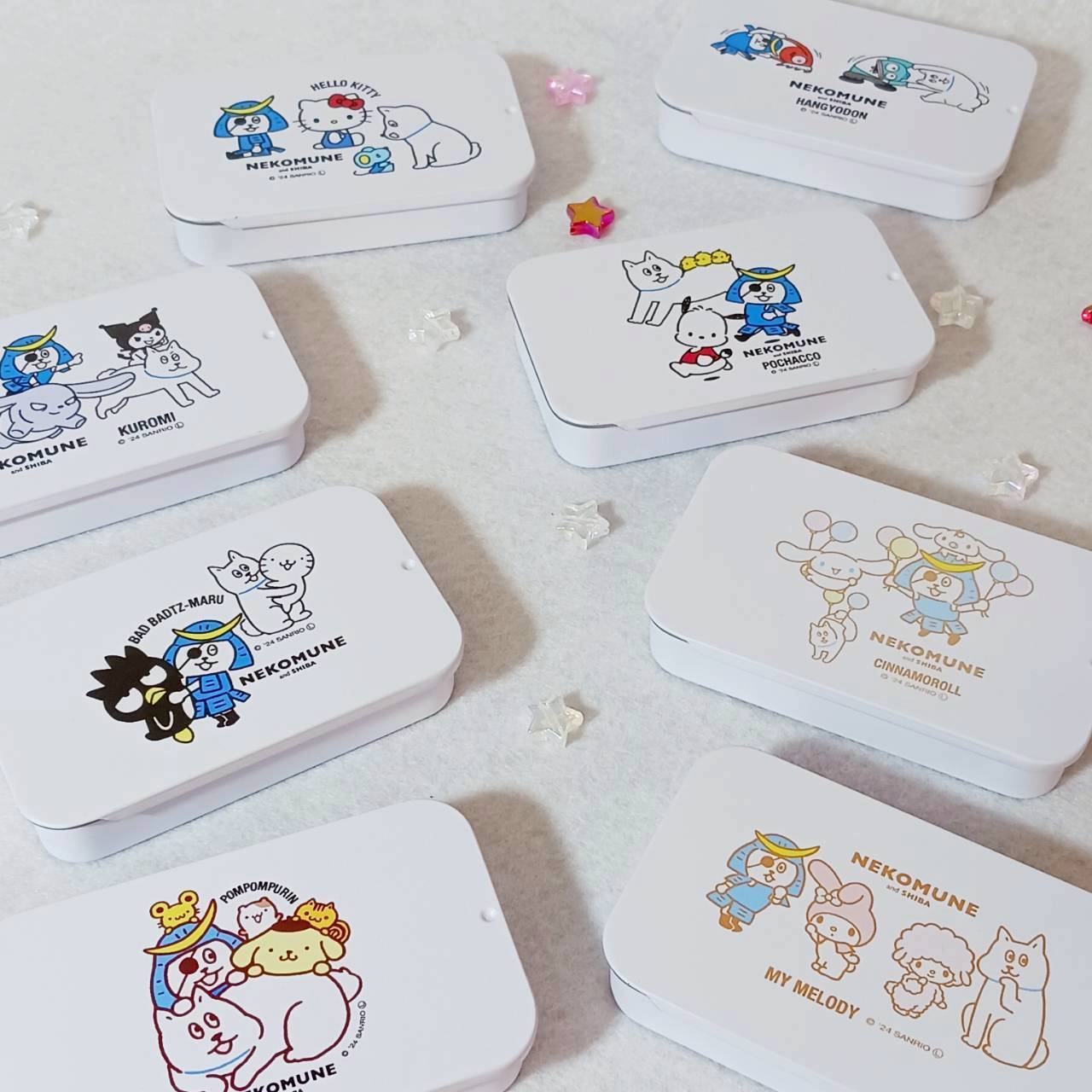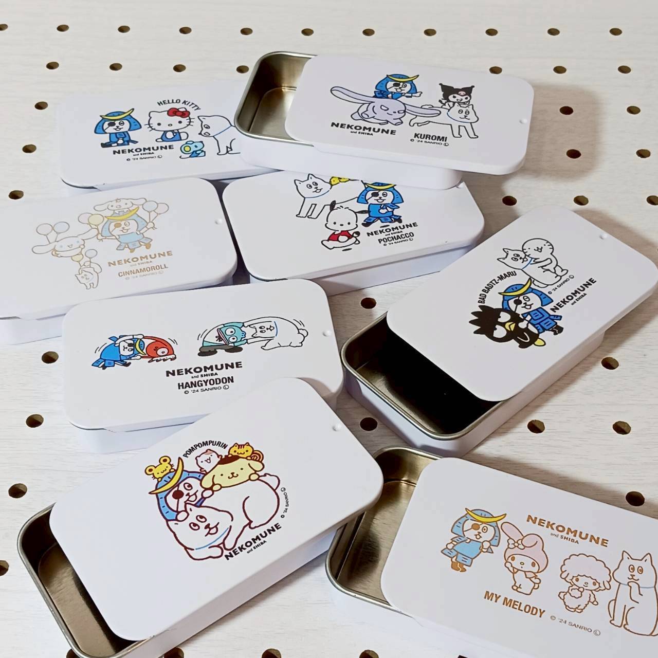 サンリオの仲間達とネコムネandシバのコラボスライド缶でございます!