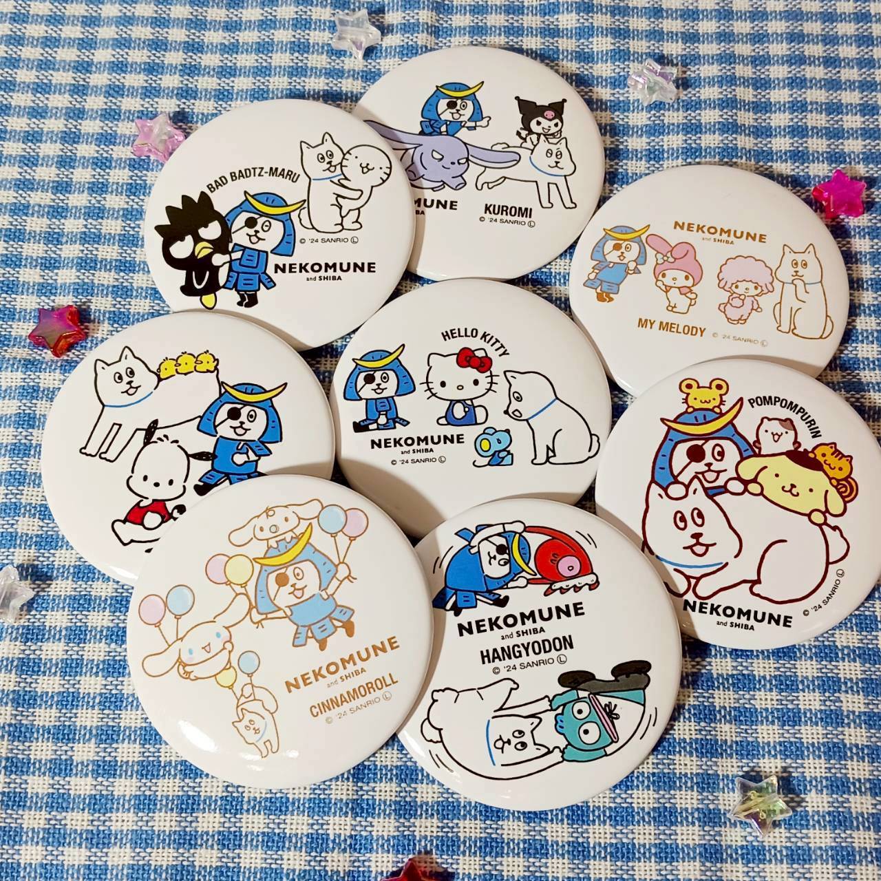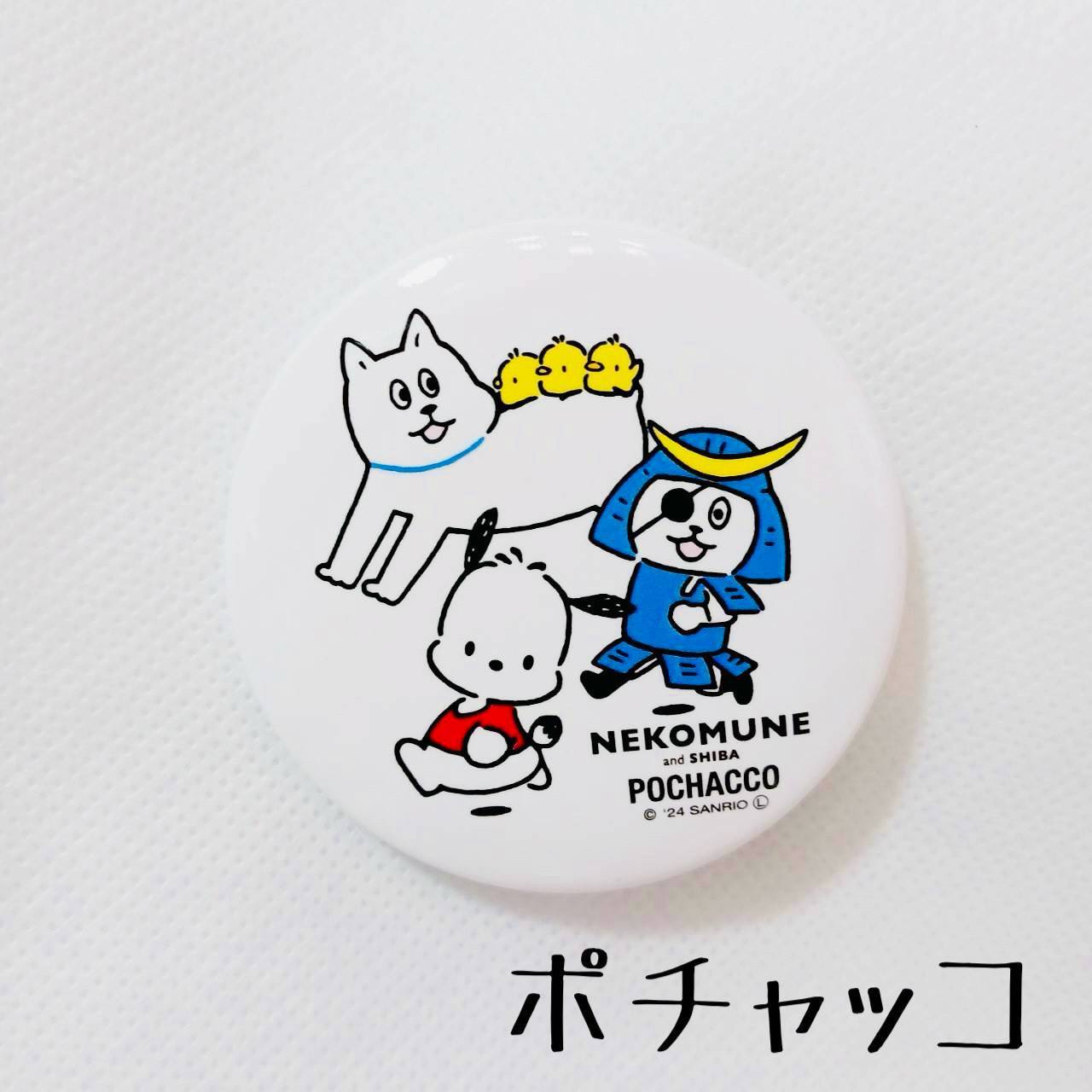 サンリオの仲間達とネコムネandシバのコラボ缶バッチでございます!