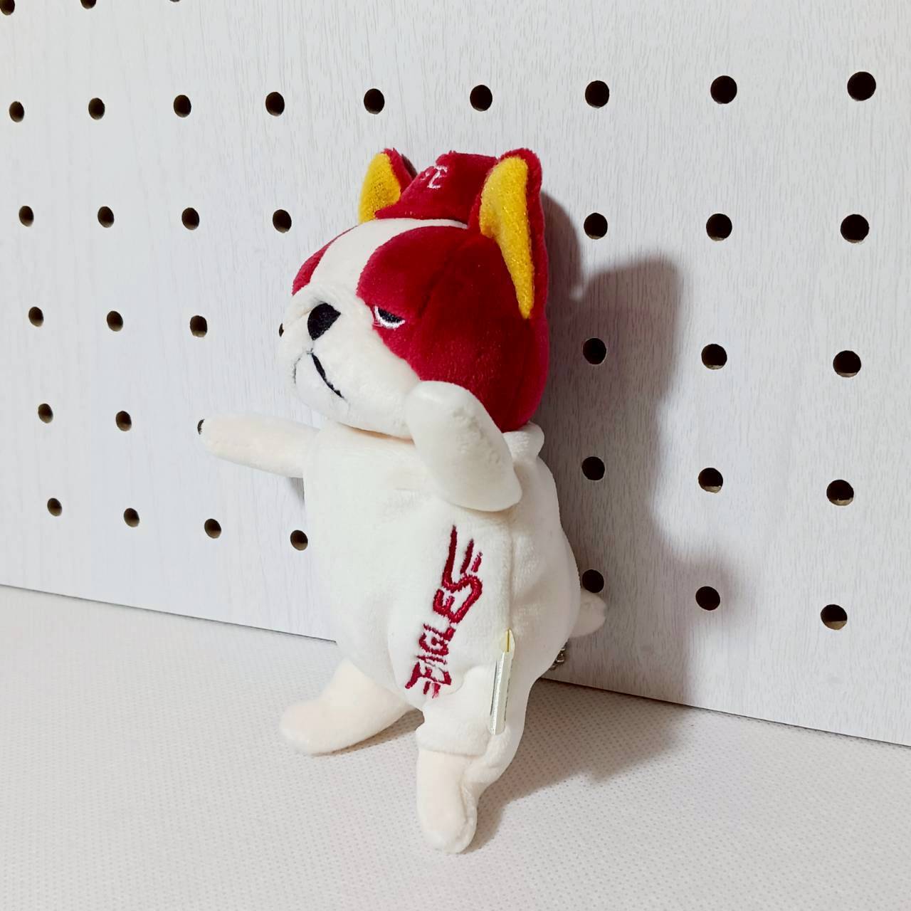 チームカラーのクリムゾンレッドをべースにユニークな表情に、マシュマロのような柔らかい生地を使用したもちもちな手触りが特徴のマスコットです。