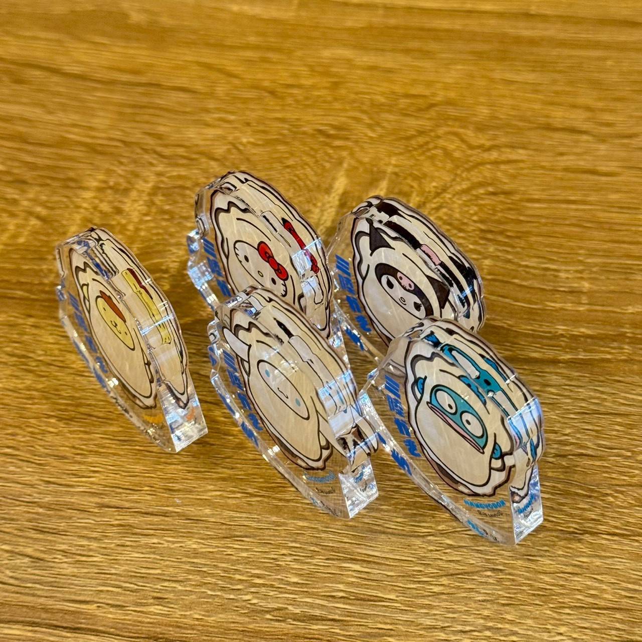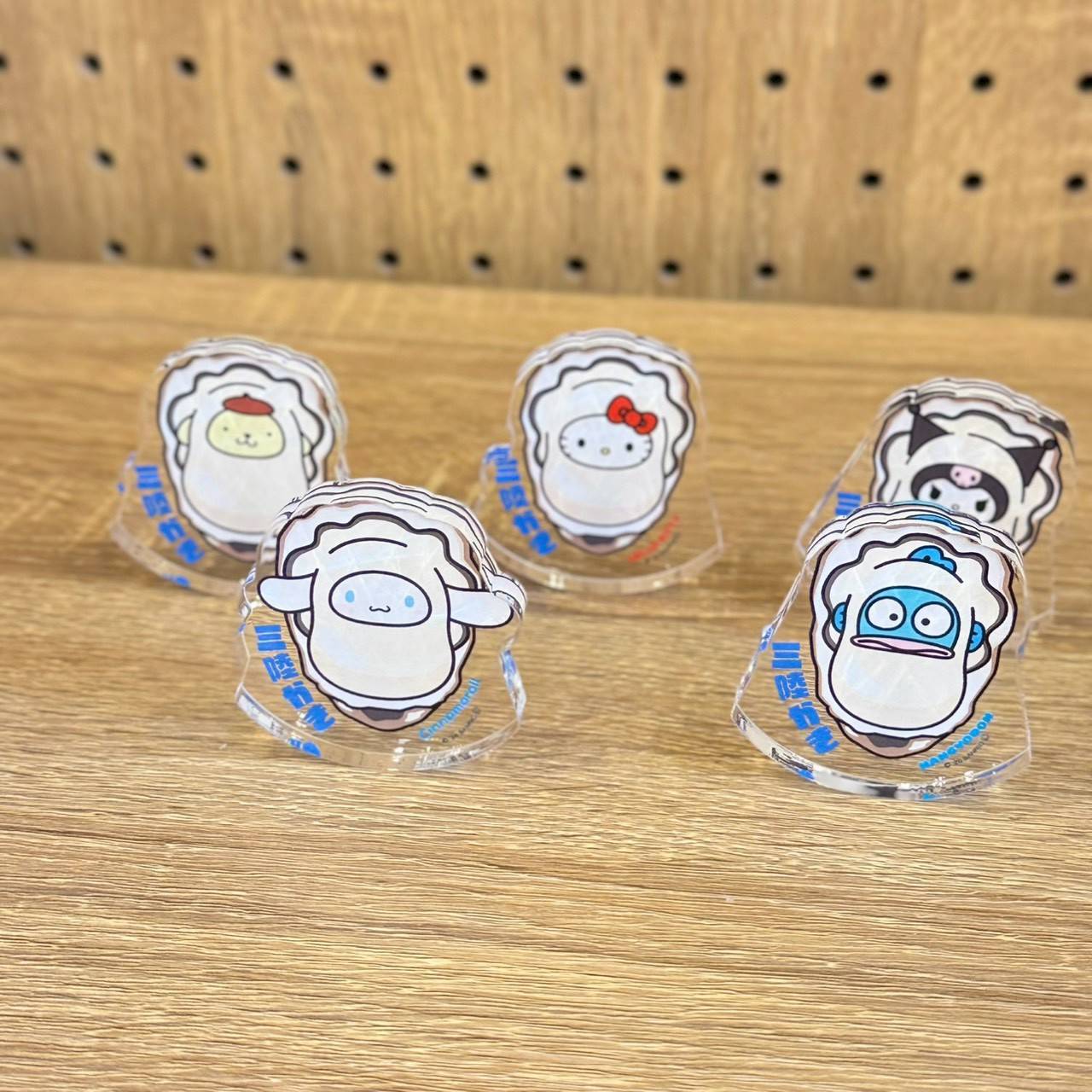 三陸カキとポムポムプリンの愛らしいデザインが特徴的なアクリルパネルスタンドです。