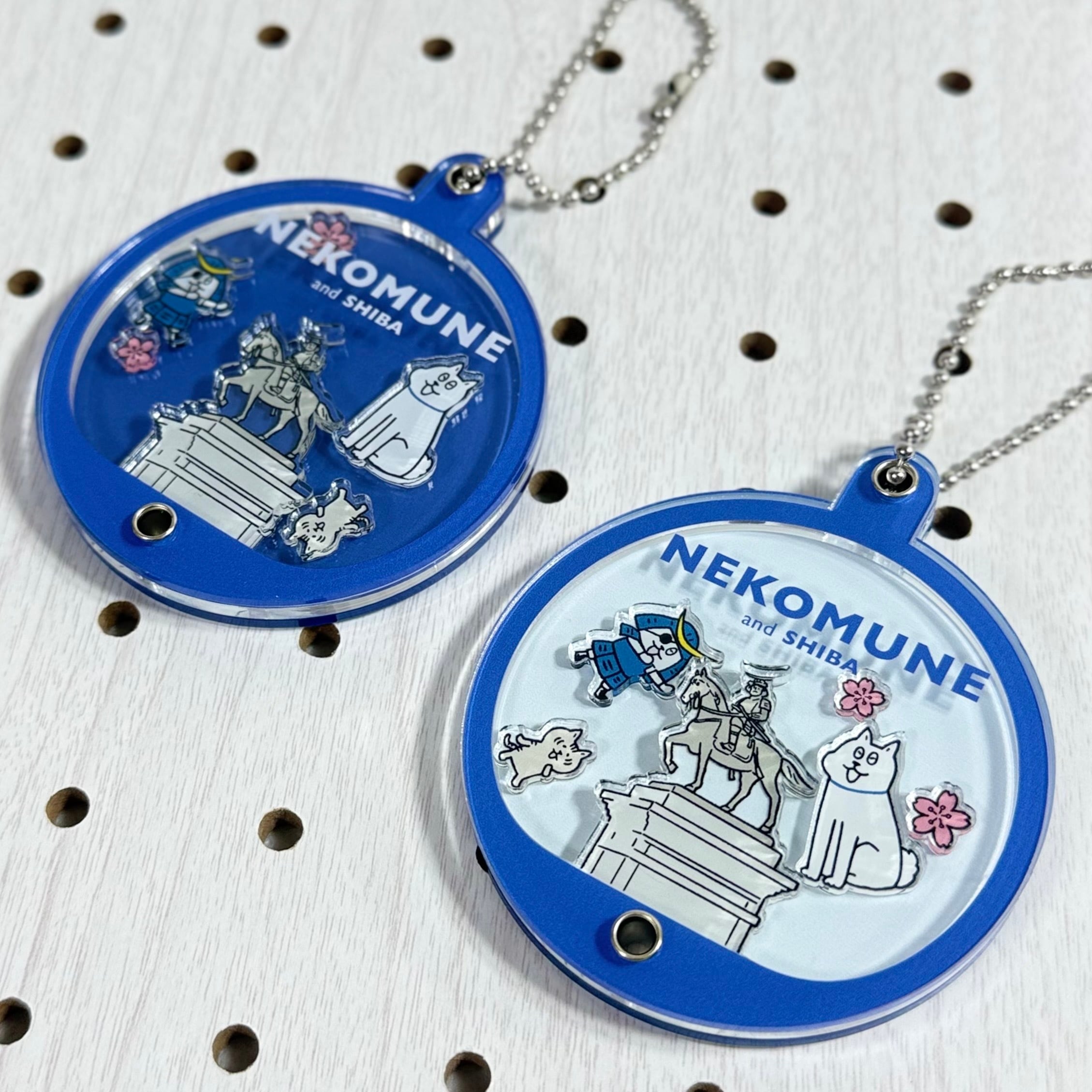 ネコムネandシバの騎馬像シャカシャカキーホルダーです!