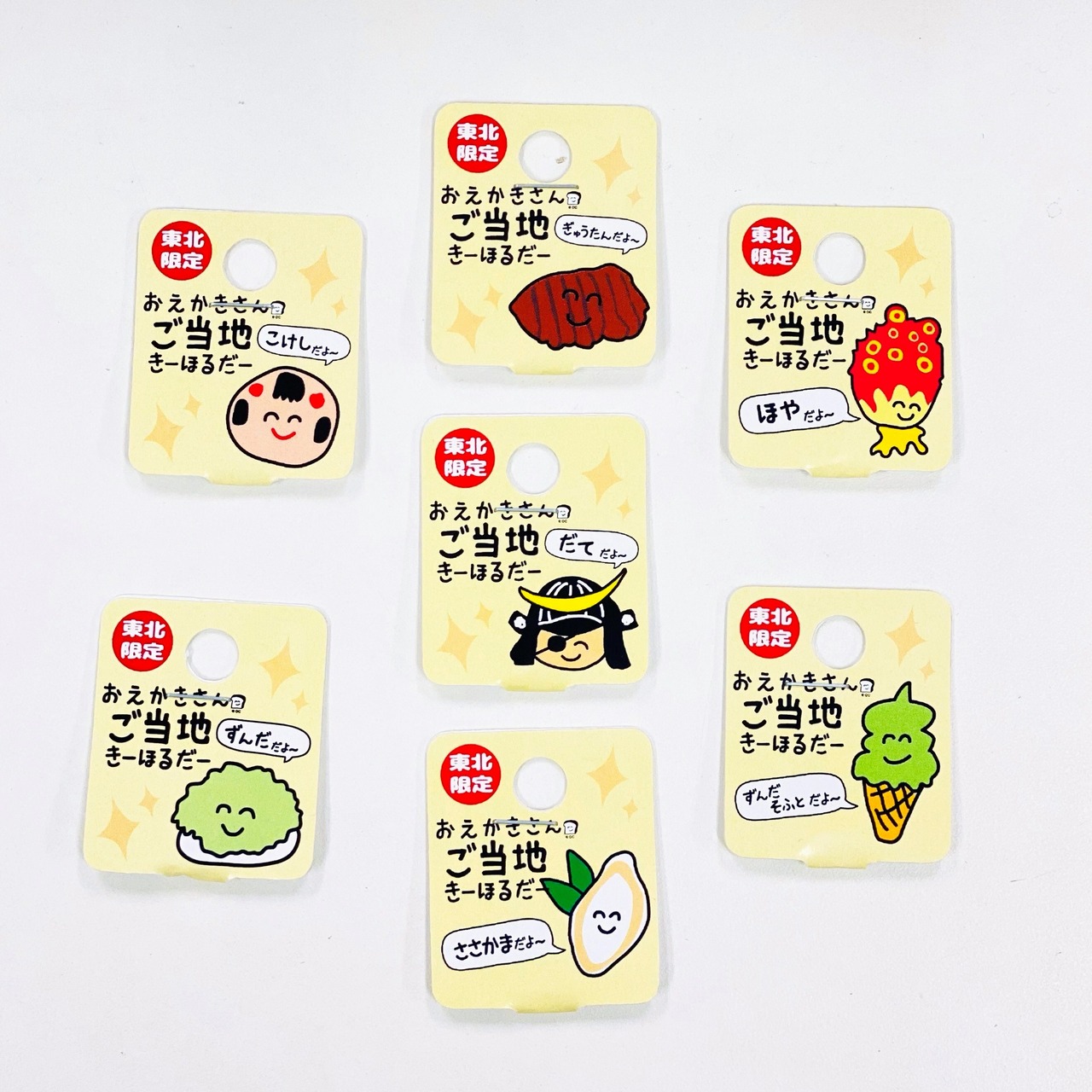 宮城は、政宗、ずんだ餅、ずんだソフト、ホヤ、牛タン、笹かま、こけしの豪華7種類!
