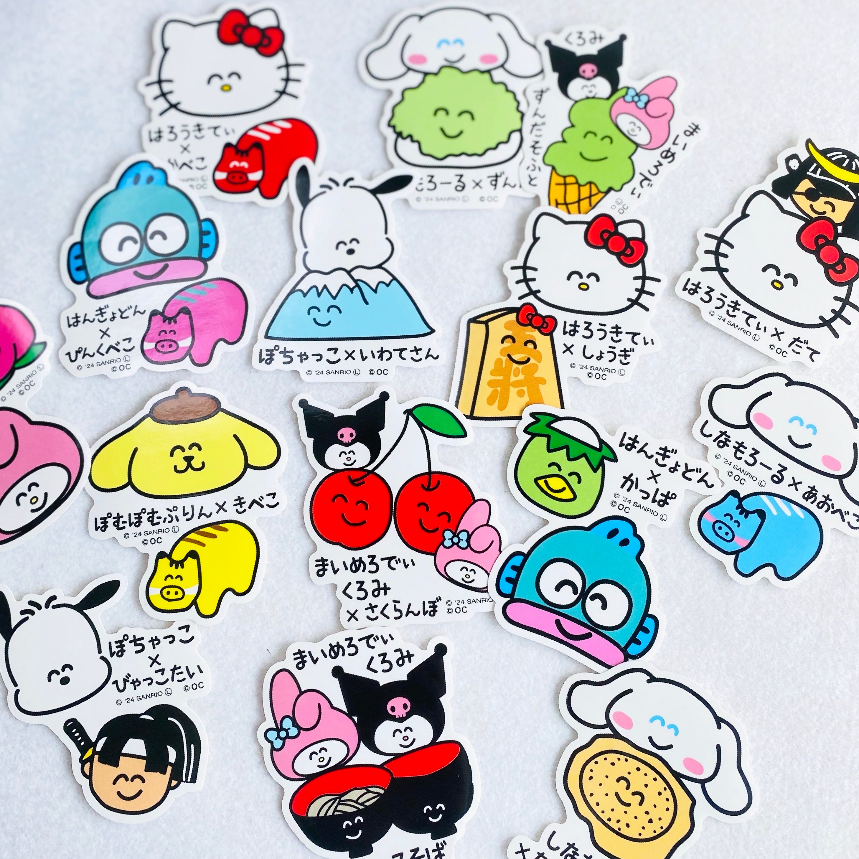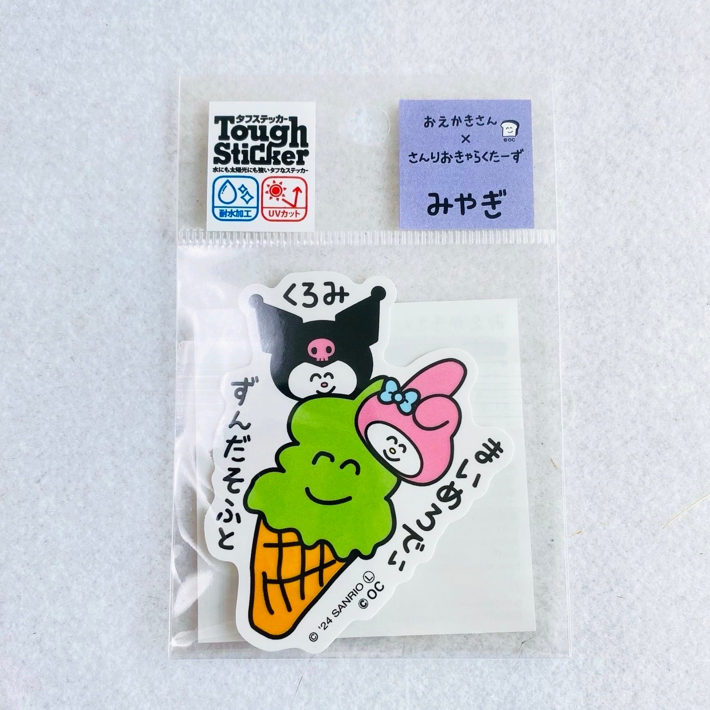 サンリオ×おえかきさん宮城、まいめろくろみ×ずんだそふとのタフステッカーでございます。